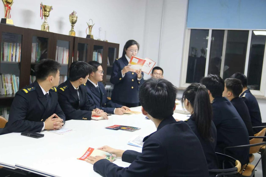 的专业特色,阐释了“红船启航、巨轮远航”的深刻内涵。两位同学的精彩发言引发共鸣,现场互动气氛热烈。分享结束后,参会同学以共读经典读物和专业书籍开展“书海共读”,在墨香中交流心得、碰撞思想。